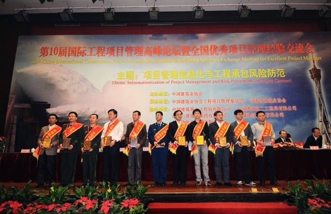 2011年10月23日-24日,第十屆國際工程項目管理高峰論壇暨全國優(yōu)秀項目經(jīng)理經(jīng)驗交流會在千年古都、牡丹花城洛陽隆重舉行。全國各省、自治區(qū)、直轄市建筑業(yè)協(xié)會(聯(lián)合會)以及各行業(yè)協(xié)會,建筑業(yè)企業(yè),工程項目經(jīng)理等各方代表,中建協(xié)工程項目管理委員會理事共500余人參會。我集團公司第一房建公司總經(jīng)理項修國同志喜獲2010年度全國建筑業(yè)企業(yè)優(yōu)秀項目經(jīng)理,并參加了此次論壇。