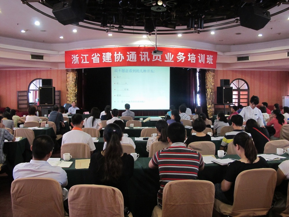 培訓(xùn)班還邀請(qǐng)了浙江省企業(yè)報(bào)刊協(xié)會(huì)會(huì)長(zhǎng)劉和平和《建筑時(shí)報(bào)》采編通聯(lián)部副主任徐列分別就寫作技巧和攝影知識(shí)作了培訓(xùn)講座。劉會(huì)長(zhǎng)從“倒金字塔、初中語文寫作、用事實(shí)說話”這三條原則闡述了寫作的技巧,用一個(gè)個(gè)實(shí)例引出了新聞標(biāo)題和導(dǎo)語的寫作關(guān)鍵、語言文字應(yīng)用的規(guī)范和用事實(shí)說話的重要性?!督ㄖr(shí)報(bào)》徐主任通過對(duì)作品的分析,詳細(xì)講解了人物、會(huì)議、景物等攝影要點(diǎn),為學(xué)員們講授了新聞攝影的特點(diǎn)、攝影的技巧等知識(shí)。此外,中天建設(shè)、長(zhǎng)城建設(shè)等五家優(yōu)秀企業(yè)報(bào)刊的負(fù)責(zé)人也作了經(jīng)驗(yàn)交流。