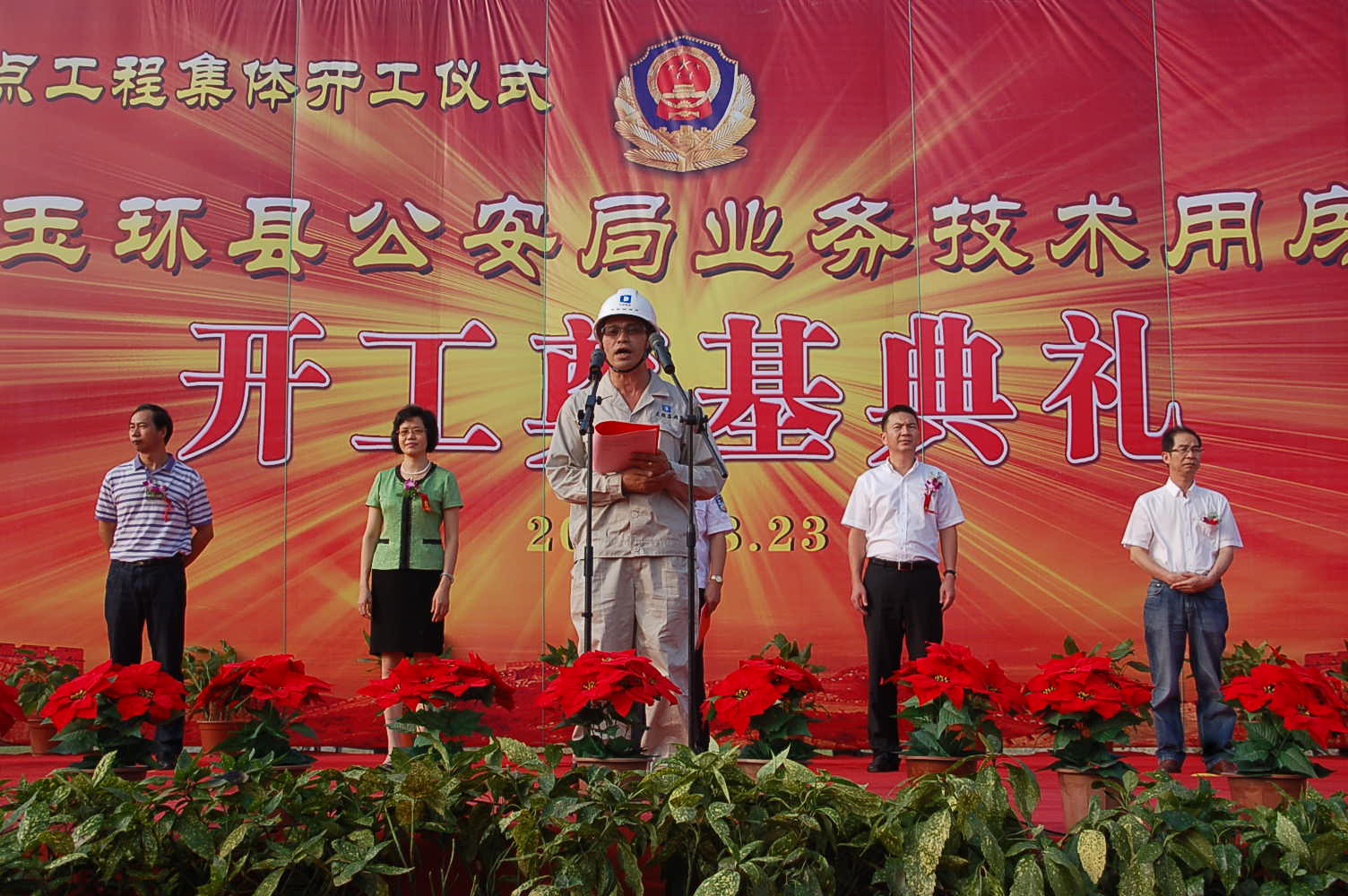 開(kāi)工奠基典禮由縣委常委、公安局局長(zhǎng)沈云才主持。市公安局副局長(zhǎng)連吉興、縣委副書(shū)記朱立國(guó)、縣委常委副縣長(zhǎng)張愛(ài)光、縣人大副主任許愛(ài)平、縣政協(xié)副主席陳茂榮、縣委政法委副書(shū)記邢文彬、縣公安局政委翁振貴等領(lǐng)導(dǎo),及集團(tuán)董事長(zhǎng)李建強(qiáng)、總經(jīng)理胡明、生產(chǎn)副總馮金榮、總經(jīng)理助理金望哲出席儀式。