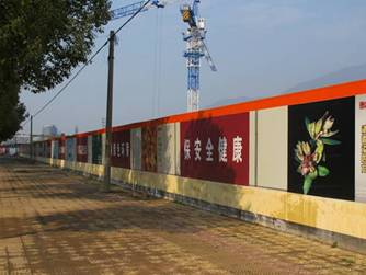 7、工地臨時(shí)圍墻采用彩鋼壓型板,可拆卸多次重復(fù)利用,美觀大方、節(jié)能環(huán)保。
